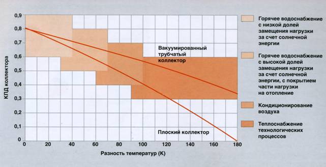 Решающим фактором для выбора типа коллектора является – наряду с наличием температурой наружного воздуха — ожидаемая разность ?Т между температурой коллектора и температурой наружного воздуха.