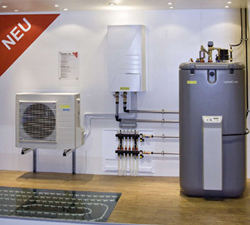 При взаимодействии с безнапорными солнечными коллекторами, тепловой насос ROTEX HPSU типа воздух-вода достигает значения суммарного годового коэффициента эффективности JAZ, равного 4,0. Сердцем же отопительной системы является устойчивый к коррозии накопительный бак горячей воды с покрытием из синтетического материала, обеспечивающий сохранение выработанной тепловой энергии практически без потерь. Благодаря проточному водонагревателю в виде гофрированной трубки из высококачественной стали, накопительный бак обладает к тому же оптимальными водо-гигиеническими свойствами. Гармоничным дополнением к системе служат элементы подпольного отопления ROTEX Monopex, работающие с низкими поверхностными температурами и оптимально использующие и распределяющие, таким образом, выработанную теплоту.