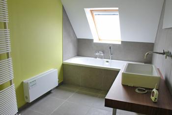 В Daikin House система Altherma подключена к системе подпольного обогрева, низкотемпературным радиаторам (в гостиной и ванной комнатах) с полотенцесушителем и фанкойлам (работающим как на обогрев, так и на охлаждение). Бытовое горячее водоснабжение обеспечивается благодаря использованию 300-х литрового бойлера системы Altherma и системы солнечных батарей.