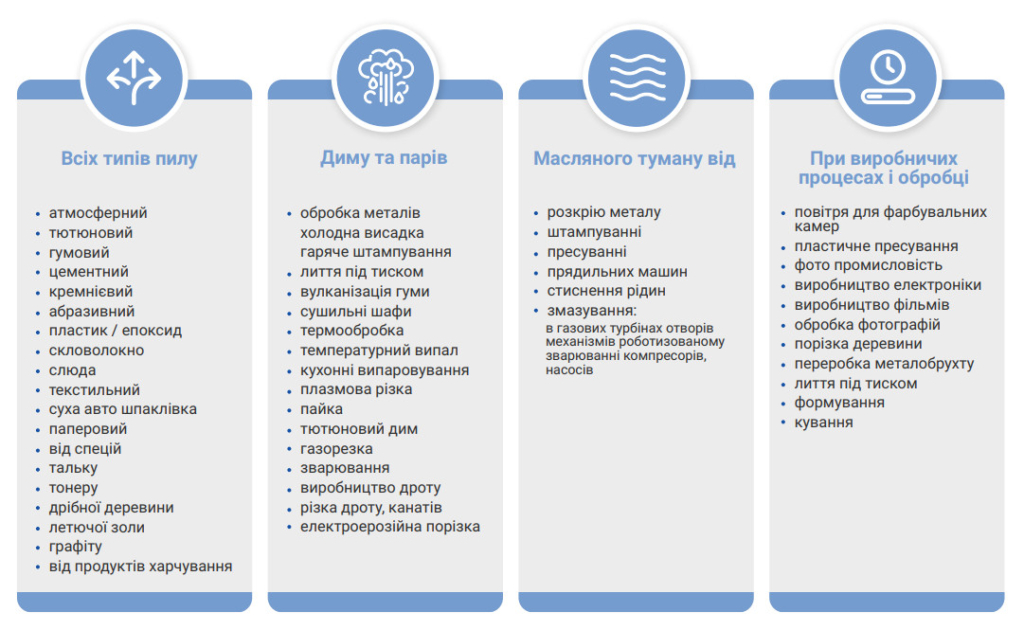 Діапазони застосування електростатичних фільтрів SIGOV